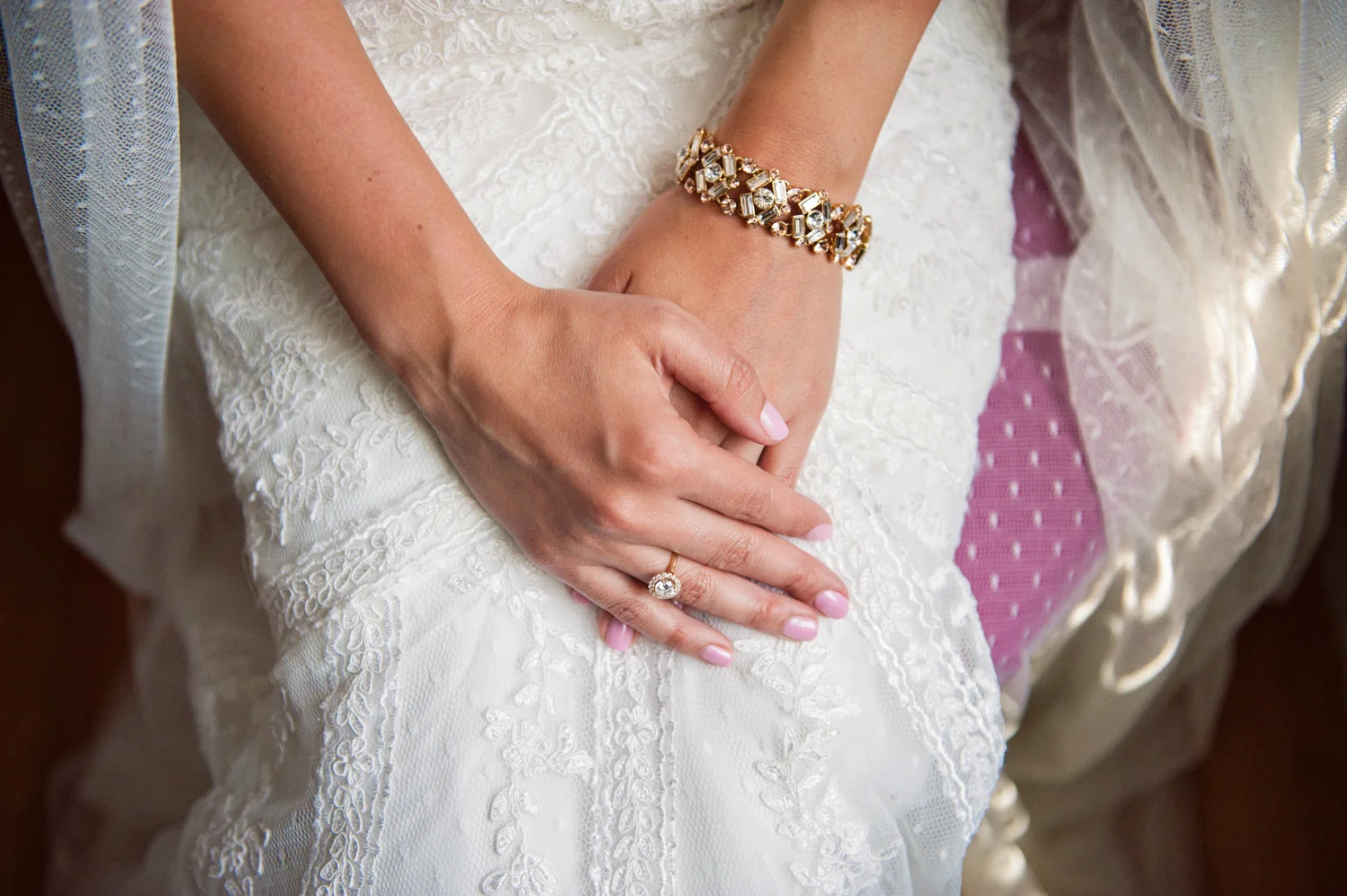 Getting Ready Location: Hotel Indigo/Month-of Wedding Coordinator: Tracey Goldstein with Polka Dot Events/Ceremony Location: Saint Francis Xavier Roman Catholic Church /Reception Location: 26 Bridge/Hair & Makeup: Salon de Quartier/Bride's Shoes: Badgley Mischka/Groom & Groomsmen Suits: Men's Wearhouse/Caterer: Dish Food and Events/Cake Designer: Buttermilk Bakeshop/Florist: Designs by Ahn/Cocktail Hour Entertainment: Highline String Trio/DJ: DJ Alkaline from Scratch Weddings/Videographer: Well Spun Weddings